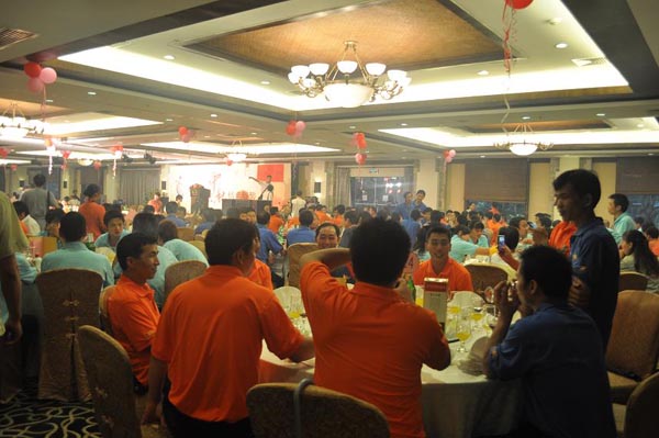 我司每年都會(huì)組織全體員工舉行這一活動(dòng),而今年恰逢公司新標(biāo)志的發(fā)布,更是加入許多精彩節(jié)目!不僅有傳統(tǒng)的晚宴、博餅,更是邀請(qǐng)專(zhuān)業(yè)的演出公司表演精彩的節(jié)目,還有員工自行組織的拉歌活動(dòng)。節(jié)目進(jìn)行當(dāng)中,另有抽獎(jiǎng)環(huán)節(jié)!總之,就是要讓員工在節(jié)日里紅上加紅,喜上加喜!